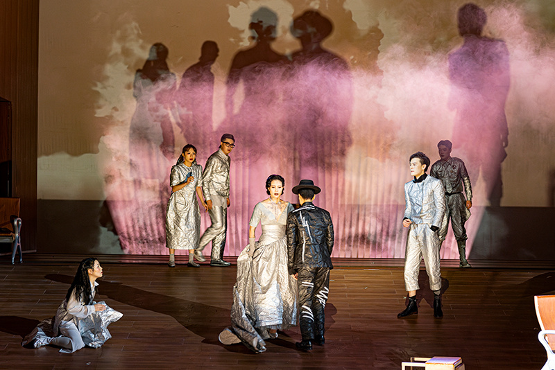 观众席也成为了表演区的拓展,演员穿梭其间,并以影像捕捉与扑克魔术等方式进行场内互动,让观众参与到演出之中。“我们有两个努力的方向,一方面希望观众能够看懂契诃夫,体会到《樱桃园》的深度;另一方面希望在形式上有所创新,让传统作品拥有新的戏剧内核。”副导演朱少鹏表示,希望通过这种舞台上下的共创,与观众形成更为充分的共鸣。