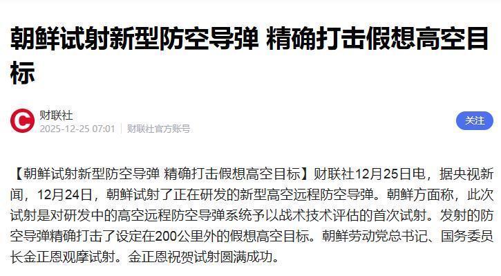 12月24日,朝鲜突然宣布,成功试射一枚新型远程防空导弹,200公里外的目标被精准命中。
