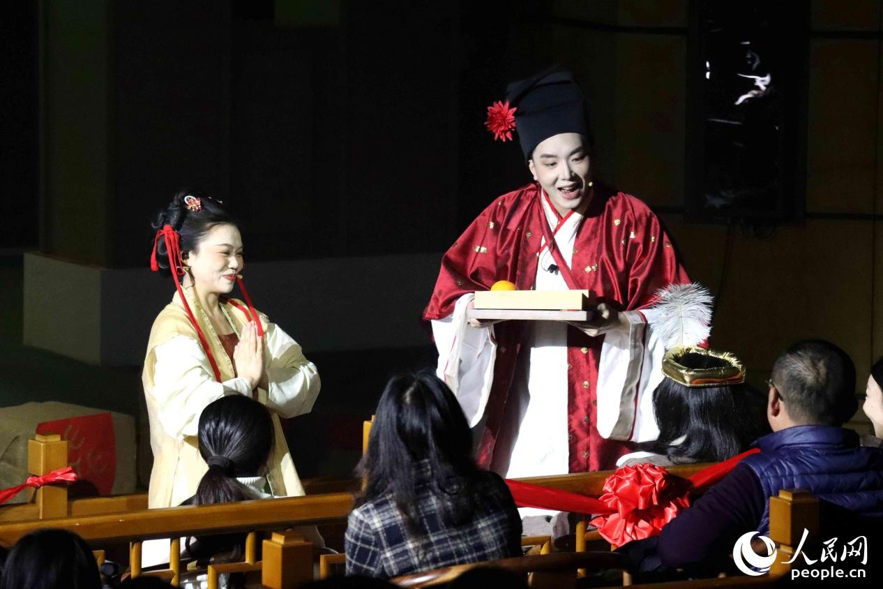 互动式剧场演艺《恭喜发财》中,观众仿佛置身南宋市舶司的拍卖现场,助力女主角沈莫离的花茶事业。人民网 谢星宇摄